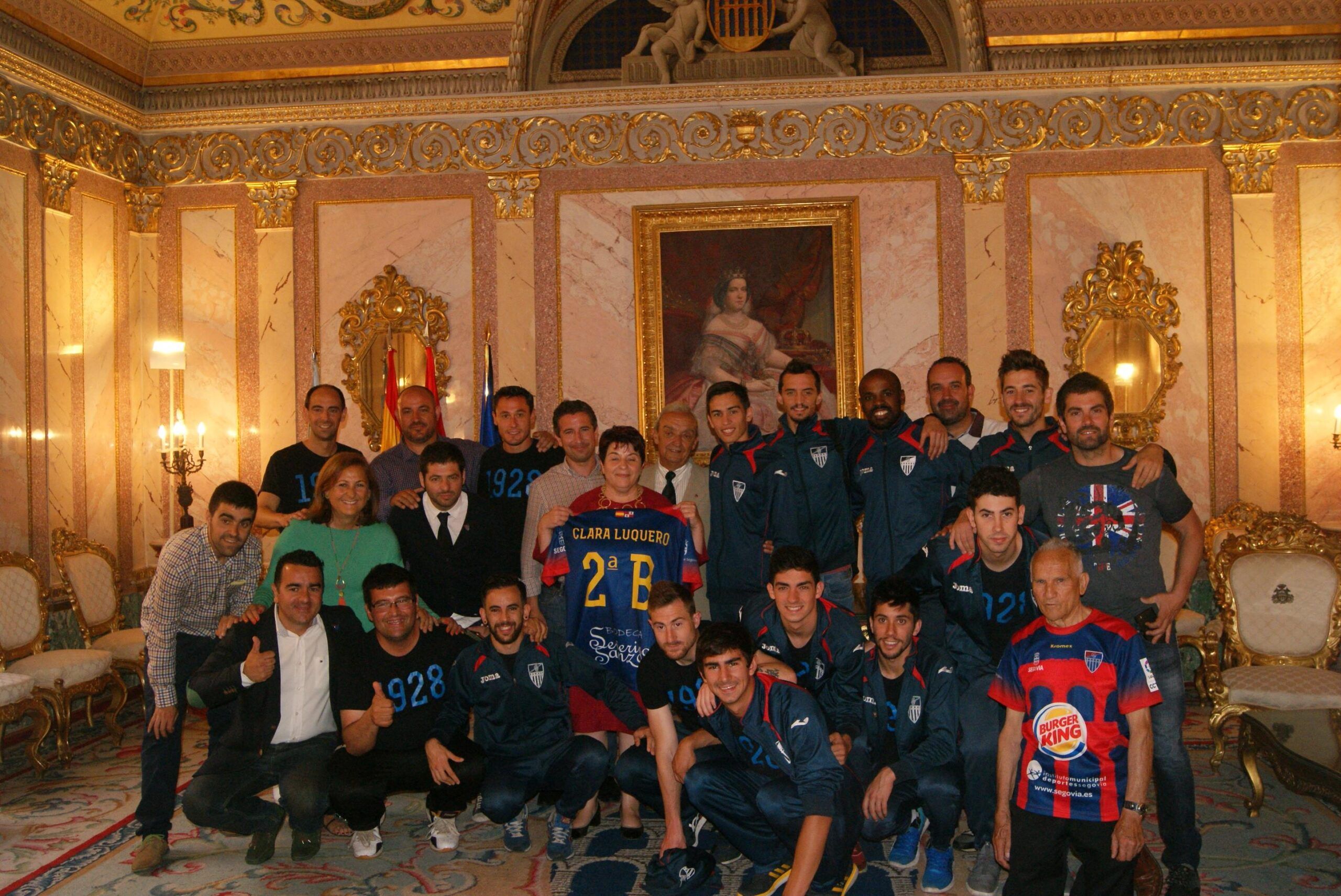 La Gimnástica Segoviana, cuerpo técnico y jugadores, han visitado a la Alcaldesa de Segovia, Clara Luquero. Una visita sorpresa preparada por el conjunto segoviano para entregarle la camiseta del Club con su nombre y el logo de patrocinador de Bodega Severino Sanz.