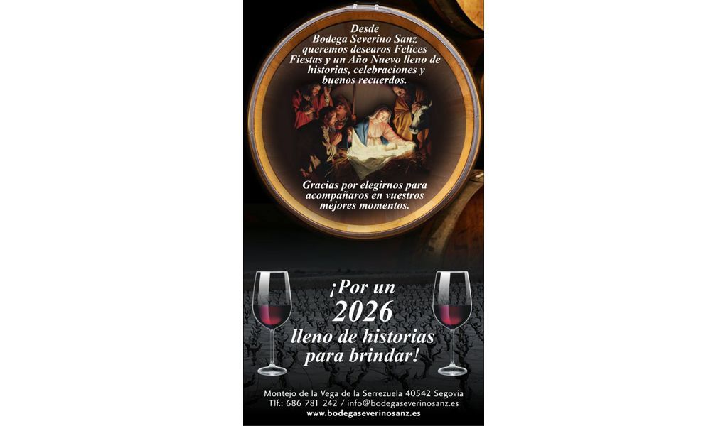 Desde Bodega Severino Sanz queremos desearos felices fiestas y un año nuevo lleno de historias, celebraciones y buenos recuerdos. Gracias por elegirnos para acompañaros en vuestros mejores momentos. ¡Por un 2026 lleno de historias para brindar!